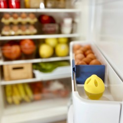 Open the lid and remove the transparent film. Place the lid back on and position the product inside the refrigerator. Replace the product when the gel reaches the minimum level or has evaporated.